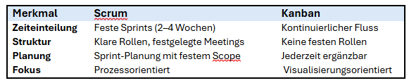 - Kanban ist ideal bei häufig wechselnden Anforderungen und Projekten ohne festen Zeitplan.